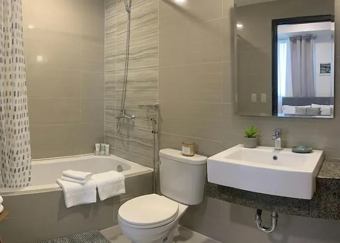 Nestled in the The Mactan Newtown district, approximately 25 minutes by foot from Happy Beach Cebu, Mactan Newtown Seaview Condo With Pool View & Beach Access Punta Engano hotel offers a terrace. This Punta Engano hotel is 2.1 miles from Maribago Public Beach and provides guests with a Jacuzzi bathtub and a sauna.